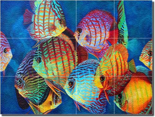 Curious Discus by Micheline Hadjis - Undersea Fish Glass Tile Wall Floor Mural 18" x 24" Kitchen Shower Backsplash Feature