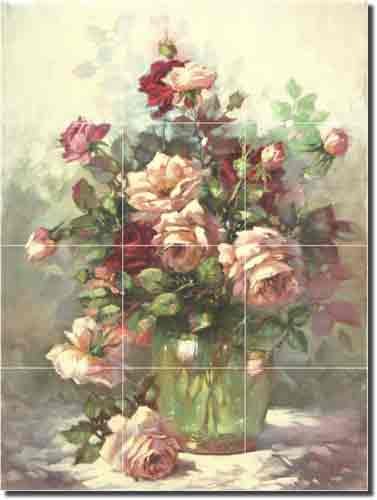 Roses in a Glass Vase by Fernie Parker Taite - Floral Flowers Ceramic Tile Mural 24" x 18" Kitchen Shower Backsplash Review