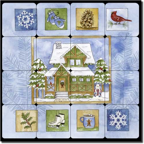 Cabin in the Woods II by Sara Mullen - Lodge Art Tumbled Marble Tile Mural 16" x 16" Kitchen Shower Backsplash Review