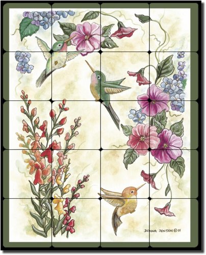 Hummingbirds by Donna Jensen - Birds Floral Tumbled Marble Mural 20" x 16" Kitchen Shower Backsplash Review