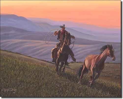 Sundown Rider by Ralph Delby - Western Art Ceramic Accent Tile 8" x 10" Kitchen Shower Backsplash Feature